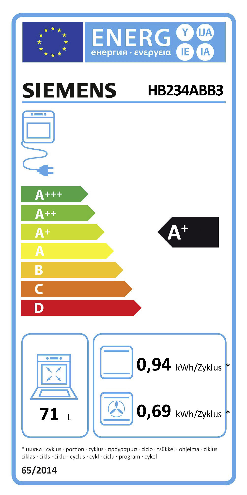Energieeffizienzklassen und Spektren: Backöfen, Herde und Dunstabzüge A+++ - D. Geschirrspüler und Kühl-/Gefrierschränke A - G und Leuchtmittel A++ - E.