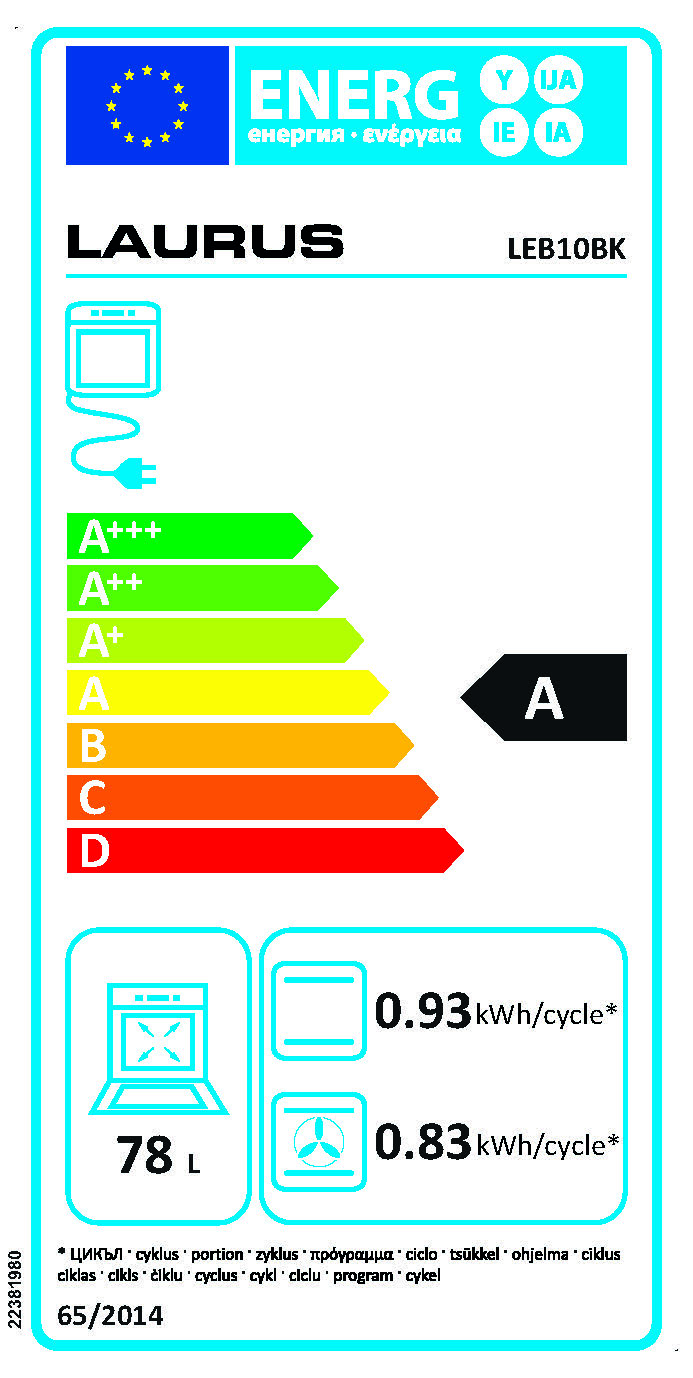 Energieeffizienzklassen und Spektren: Backöfen, Herde und Dunstabzüge A+++ - D. Geschirrspüler und Kühl-/Gefrierschränke A - G und Leuchtmittel A++ - E.